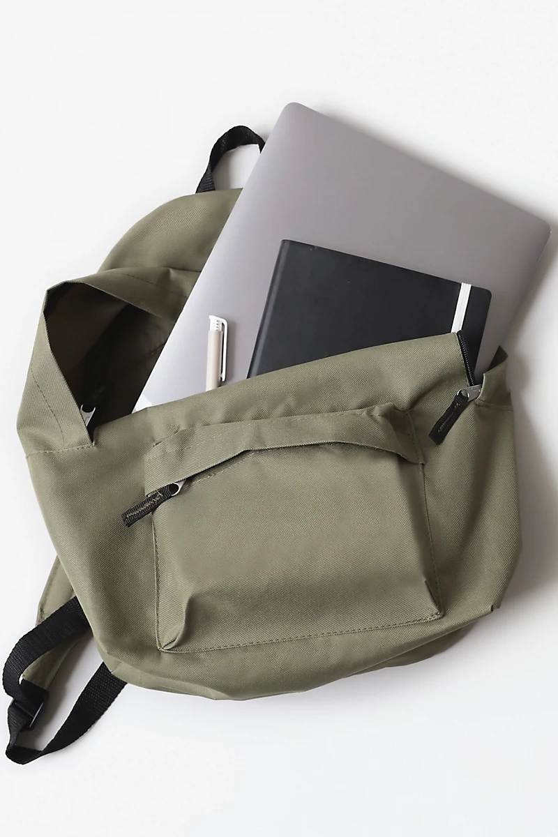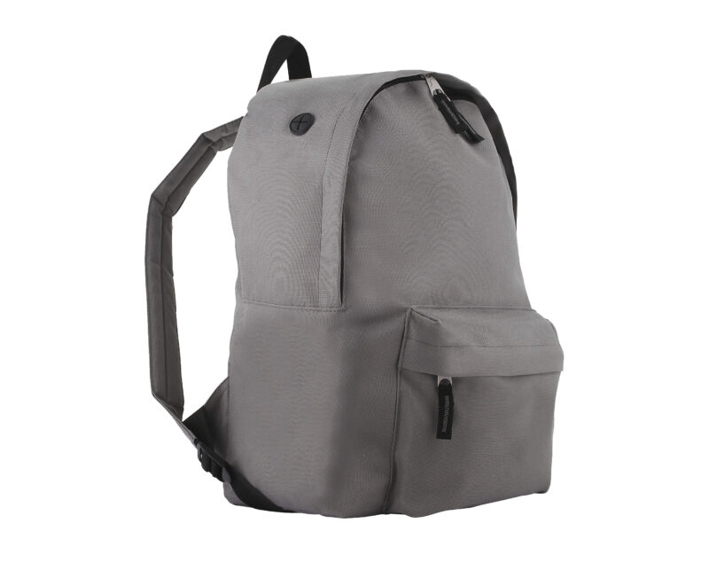 Mochila de poliéster 600D. 100% poliéster. Gran compartimento central con doble deslizador. Bolsillo frontal con cremallera. Pasa cable. Tirantes ajustables acolchados y reforzados. Espalda acolchada. Asa de transporte de nylon.