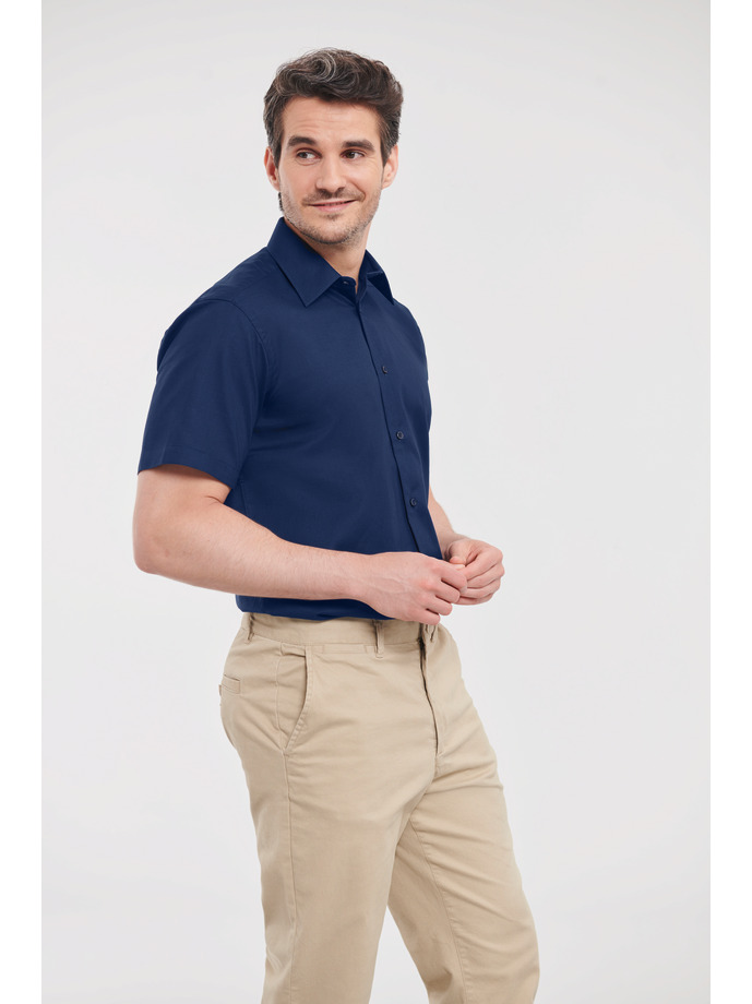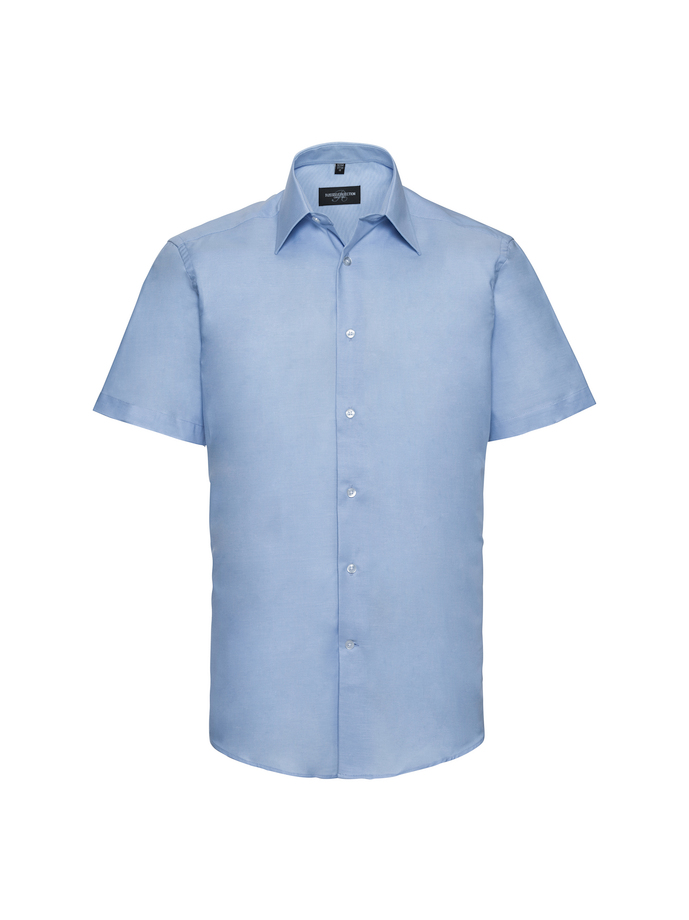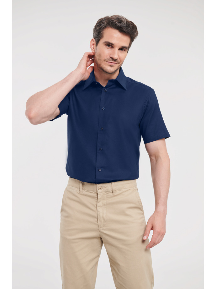 70% algodón;30% Oxford de poliéster. Blanco: 130 g/m² Colores: 135 g/m². Lavado de ropa a 40 °C o menos. De fácil cuidado. Cuellos Kent rígidos. Dobladillo curvado.