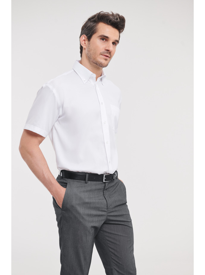 100% micro-sarga de algodón. 120 g/m². Lavado de ropa a 40 °C o menos. De fácil cuidado. Dobladillo curvado. No necesita planchado. Cuello abotonado. Canesú trasero con tablas laterales. Bolsillo a la izquierda en el pecho.