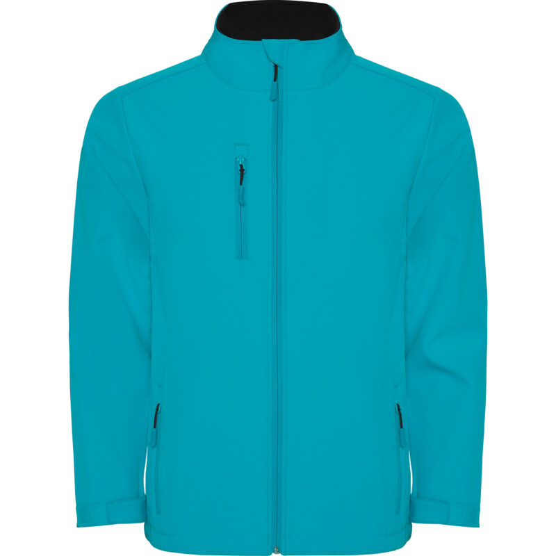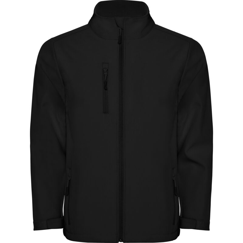 Chaqueta softshell de 2 capas con cremallera frontal invertida. Repelente al agua y resistente al viento. Interior en tejido micropolar. Dos bolsillos laterales y uno en pecho derecho con cremalleras invertidas. Protector de barbilla del mismo tejido invertido. Ajustadores laterales en el interior en tallas de adulto.