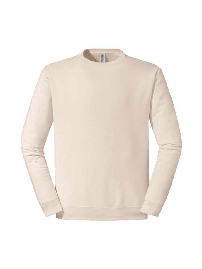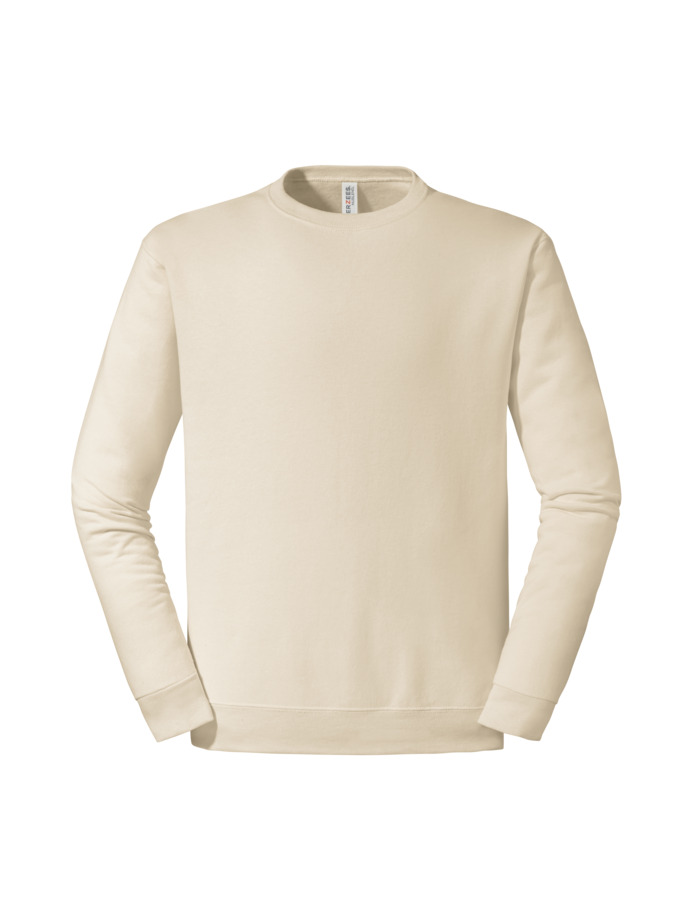 50 % algodón, 50 % felpa preencogida de poliéster NuBlend®. Algodón estadounidense de origen sostenible. Alta densidad de las puntadas para ofrecer una superficie lisa para la impresión. Pespunte a dos agujas en cuello, sisas y cintura. Canalé 1×1 en los puños y en la cintura con elastano para mayor elasticidad y recuperación del tejido. Lavado de ropa a 40 °C o menos.