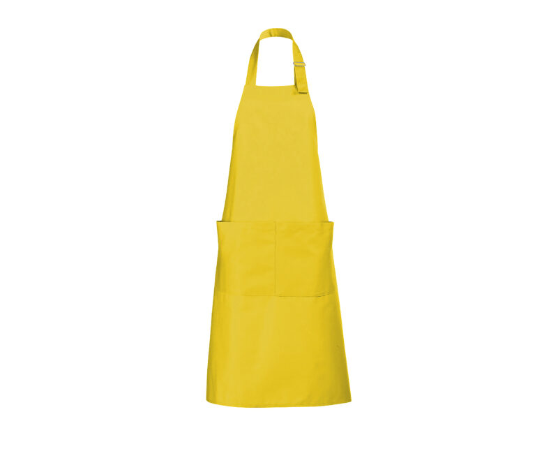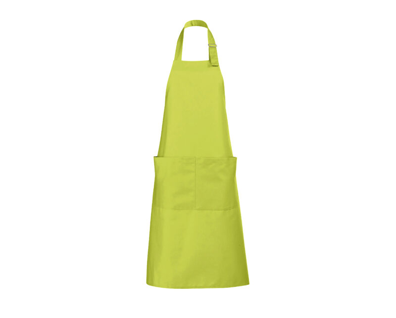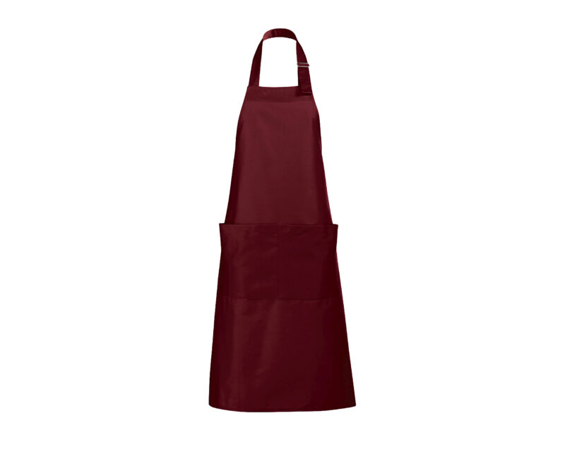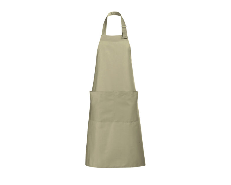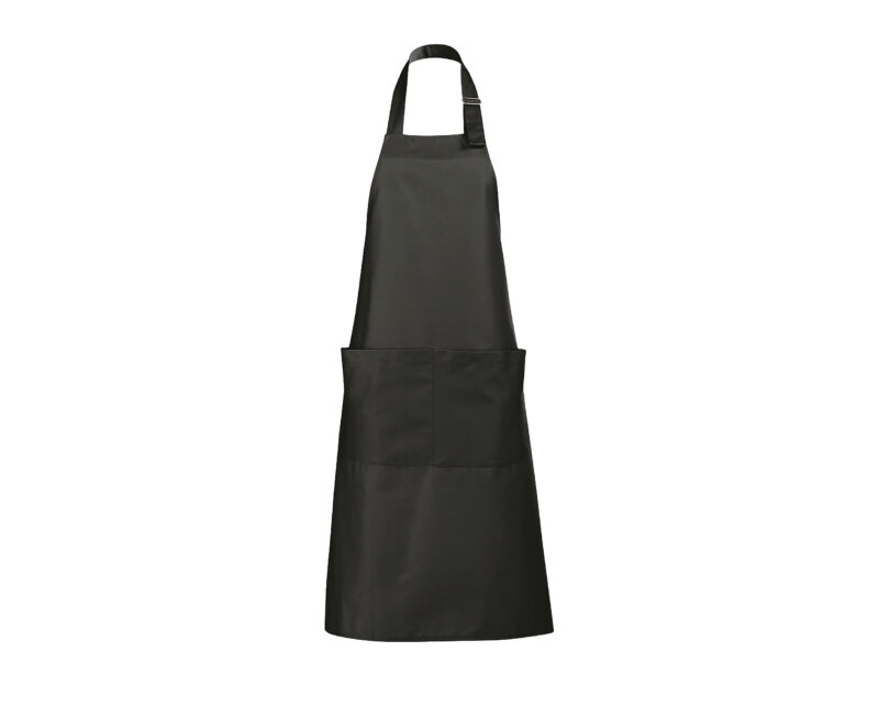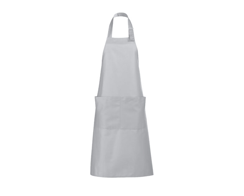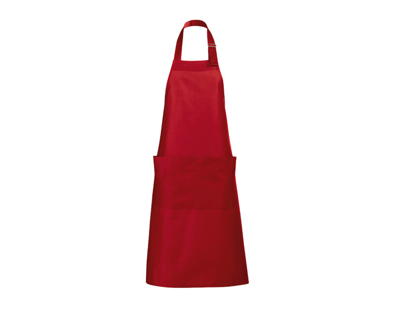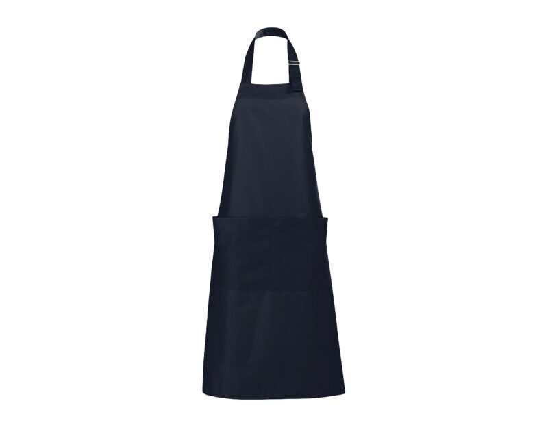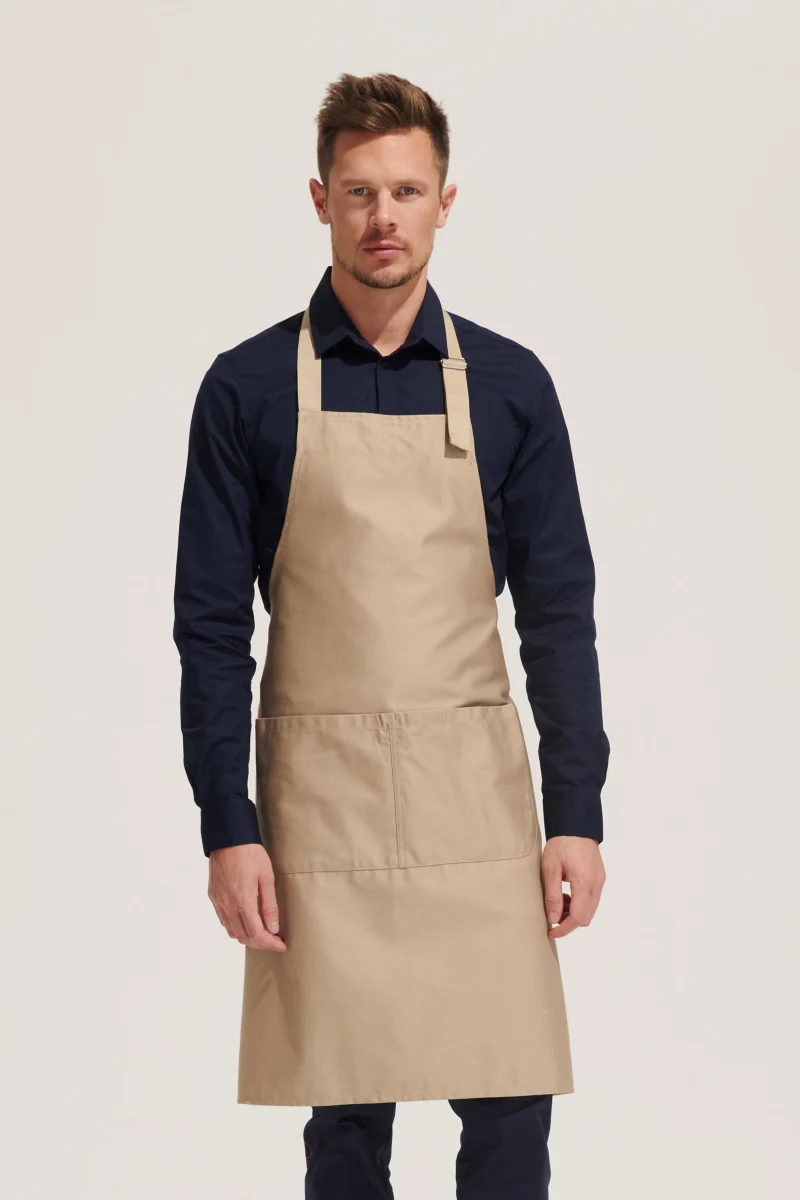 Delantal largo con bolsillos. Polialgodón 240. 65% poliéster – 35% algodón. Gran bolsillo frontal con 2 compartimentos.Ajustable en cuello con hebilla metálica.